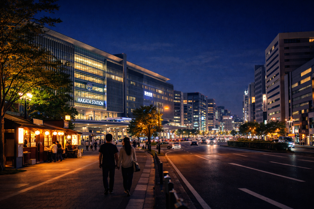 博多駅周辺と空港寄りは、出張、観光、深夜到着、早朝出発のどれにも対応しやすいエリアです。駅徒歩圏の店と車で入りやすい店が混在しているので、自分の移動手段に合わせて選ぶと失敗しません。