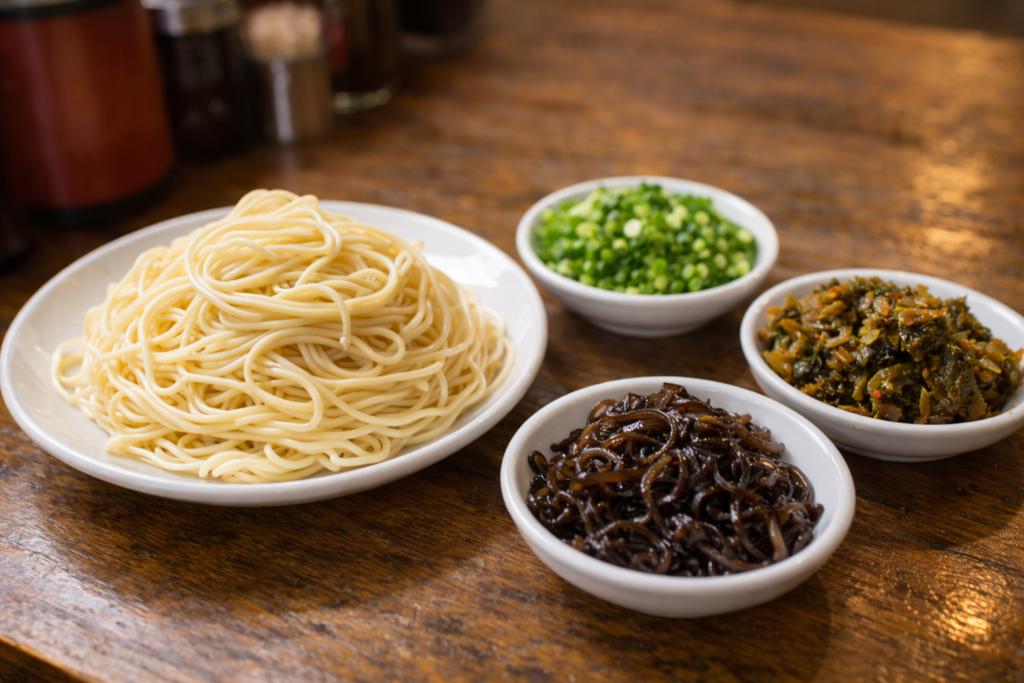 - 味変は紅生姜・ごまなど卓上で軽く調整