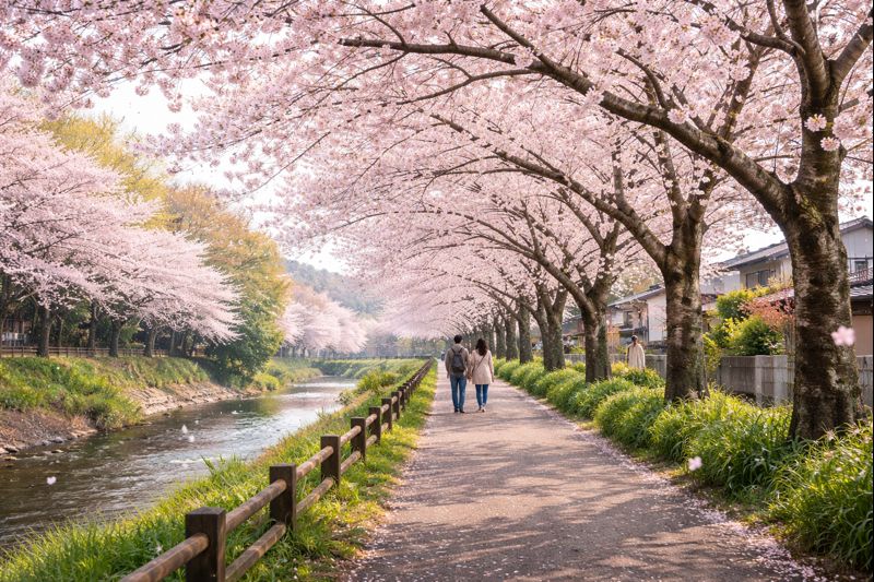 「桜=大きな公園」というイメージがありますが、人混みを避けたいなら公園以外の場所に目を向けるのが効果的です。川沿い、寺社の参道、住宅街に近いエリアは、花見目的の人が集中しにくく、散歩しながら静かに楽しみやすい傾向があります。