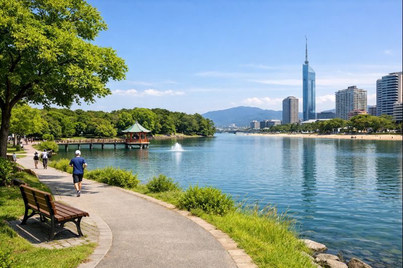 福岡は、少し歩くだけで景色がガラッと変わる街です。大濠公園の王道ルートで整える日もあれば、海沿いで潮風を浴びたり、川沿いで夜景を眺めたり、路地のカフェに寄り道する日もあります。