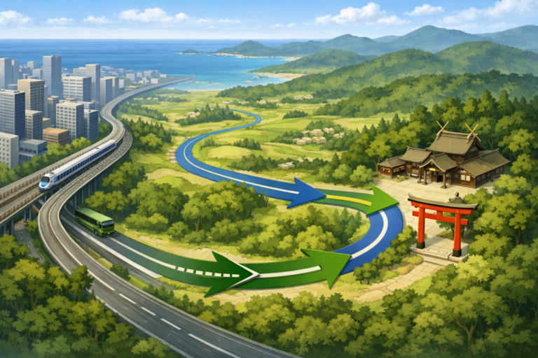 一方で、費用を抑えたい人や運転に不慣れな人は、電車とバスを組み合わせた移動が現実的な選択になります。自分の旅程と予算に合わせて、無理のない手段を選びましょう。