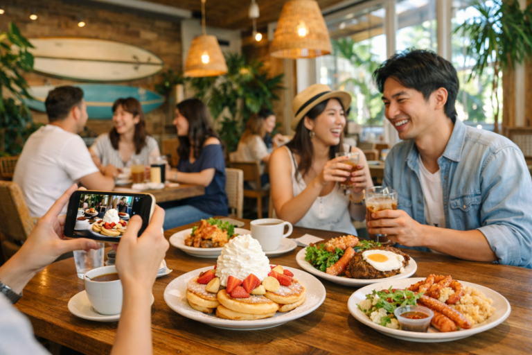 口コミでは「ハワイに来た気分になれる」「長居しやすい」といった声が見られます。一方で、週末のピーク時間帯は賑やかになるため、落ち着いて過ごしたい場合は平日午前中や夕方の利用が向いています。