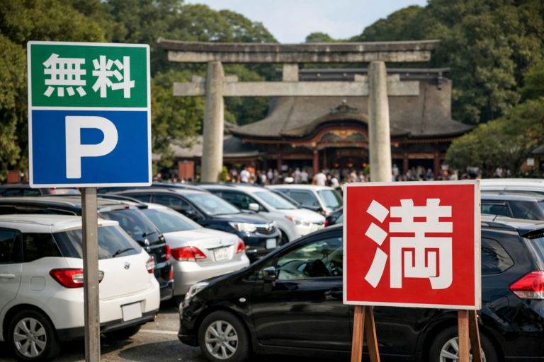 繁忙期は「公式駐車場に停められたらラッキー」程度に考え、最初から複数の有料駐車場を想定しておくと、ストレスなく参拝できます。