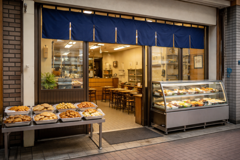 「食堂+弁当屋」のように買ってすぐ食べられる導線があるため、短時間で回転しやすく、価格を抑えやすいタイプです。店頭で惣菜や弁当を選べるスタイルは、急いでいる日でも使いやすいという口コミにもつながっています。