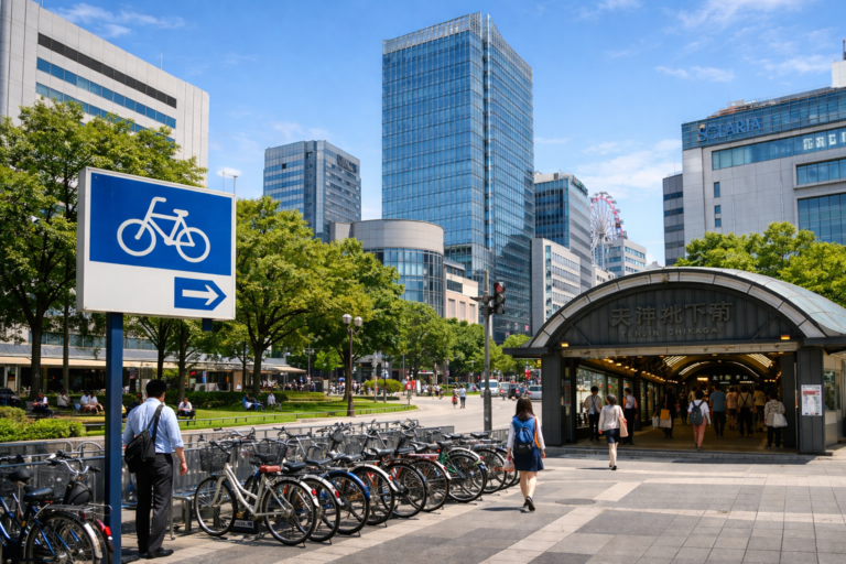 同じ天神でも、地下鉄の出口や西鉄駅の位置を意識すると、体感の移動時間が大きく変わります。特に雨の日は、地下街や直結施設を使えるかどうかで快適さが変わるため、駐輪場だけでなく地上と地下のつながりまで見るのがポイントです。