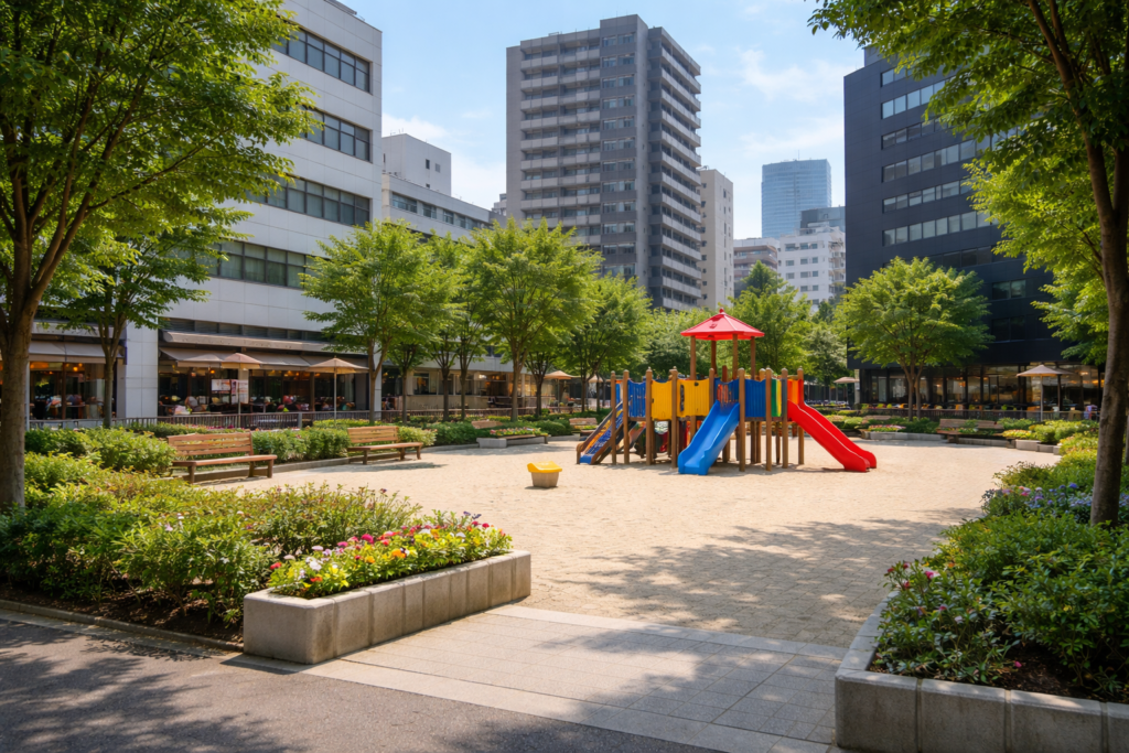 子連れなら、公園で遊ぶ時間だけでなく、移動中のトイレや食事場所も含めて段取りを組むと安心です。都市部の小公園は、周辺施設まで含めて計画することで快適さが大きく変わります。